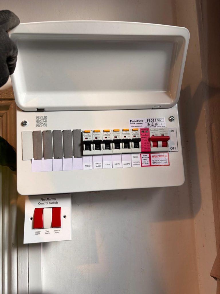Electricians 4 London recently carried out a consumer unit (fuseboard) replacement alongside socket upgrades at a residential property in Islington. The existing fuseboard was outdated and no longer compliant with current electrical safety standards, making an upgrade essential to protect both the property and its occupants.